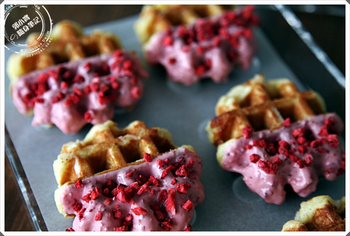 為了尋找更多不一樣的口感,所以會有塗醬的這系列,比較繽紛的第一眼就看到了這粉色系的草莓嘉年華,草梅的香氣最主要來自於塗醬的部分,塗醬本身就應該有甜度了,加上了珍珠糖,所以整體的甜度會比其他鬆餅來的高一點,喜歡吃很甜的朋友們可以嚐試看看這一款,應該會很滿意才對XD |