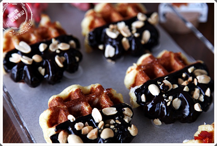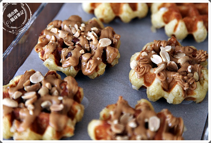 也算是很特別的一款,將半個鬆餅沾滿了巧克力醬,再灑上花生,花生巧克力本來就是一對哥倆好了,花生增加了咀嚼上的口感豐富度,巧克力嚐起來反倒是配角,增加脆皮口感的配角,整提以鬆餅的麵甜香跟花生領軍。 |