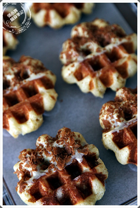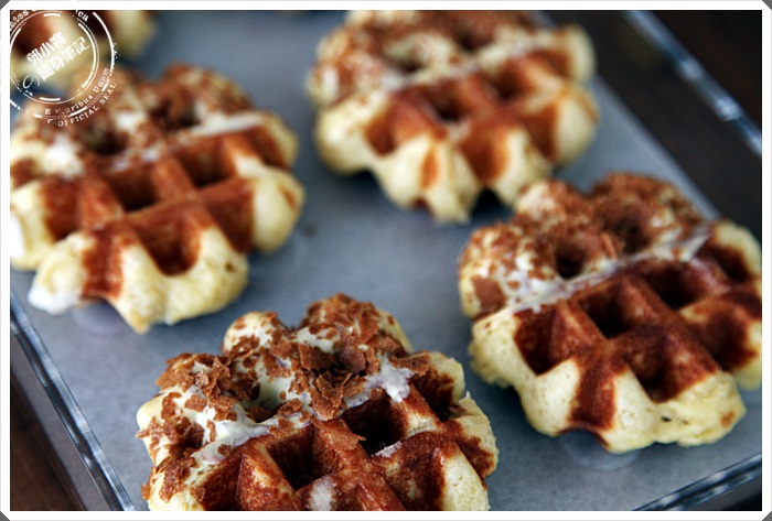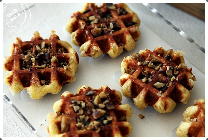 一口咬下原味就可以清楚感受到剛剛一開頭跟大家分享的好吃比利時鬆餅的三個元素,雞蛋、糖、麵粉通通的優點你都吃的出來,濃郁的蛋香,紮實水綿的口感,甜而不膩頗為清爽的珍珠糖,一整個相當的搭配,重點是珍珠糖的點綴相當的棒,不像一般的蜂蜜糖漿,球型的珍珠糖在咀嚼中會咬到,增加了整體鬆餅的口感豐富幸,幸福ING!!! |