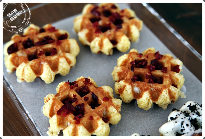 | 蔓越莓也是同樣使用果乾灑滿整個掌心鬆餅,不仔細看會跟番茄果乾搞混,蔓越莓本身的味道就比較重了,但是乾燥過的果乾大部份都剩下果香味,但是還是吃的出來蔓越莓的微酸口感。 |