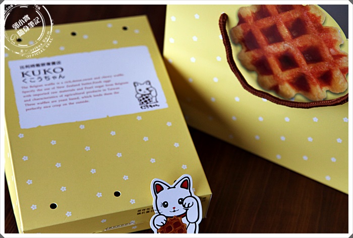 KUKO比利時鬆餅買六個就可以裝一個盒子,仔細看了一下盒子還滿有設計概念的,這盒子密封後只能打開一次,撕開封條後就不能重複使用了,而且因為鬆餅當天真的出了很多,我跟朋友就當作下午茶慢慢聊慢慢吃,
