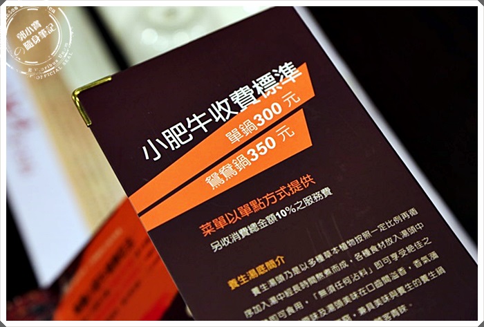 小肥牛之前來吃過幾次,基本上我對她們加的收費標準沒有太大的印象,這次仔細看了一下,才發現有鴛鴦鍋350元的部分,老實說也還好,很多單點式的火鍋店都是收人頭費的,一輪收下來其實也不只這些錢了。