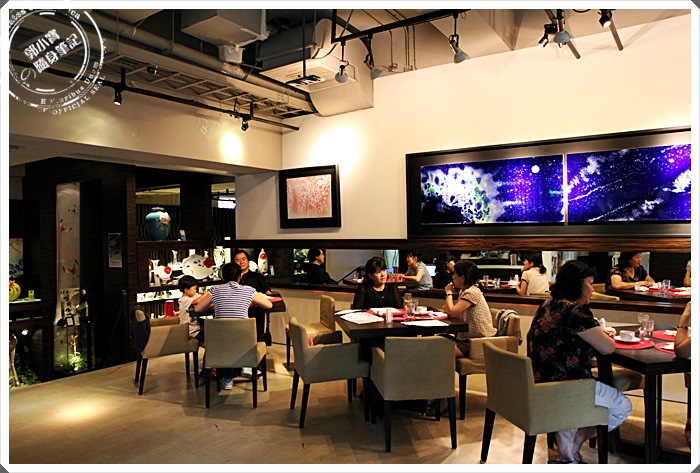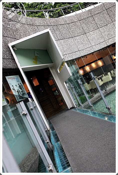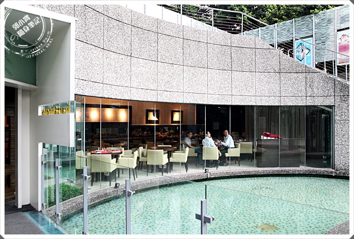 | 第一次聽到原來法蘭瓷也有餐廳的時候頗為雞驚訝,原本以為她不是藝術品跟瓷器的部分嗎? 要不是朋友相約在這裡吃飯,我想我永遠不知道這邊有一家餐廳,就在台視大樓對面的游泳池樓下,中間有個迴旋梯造型,順著樓梯走下來就可以看到一整面圓弧落地窗,這邊就是法蘭瓷的餐廳了,經過水池中間的走道直接進入到餐廳裡面。 |