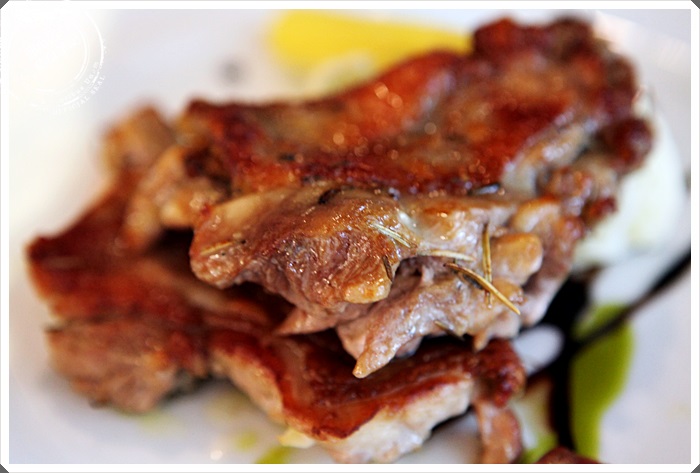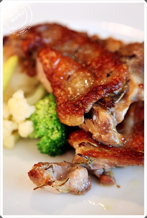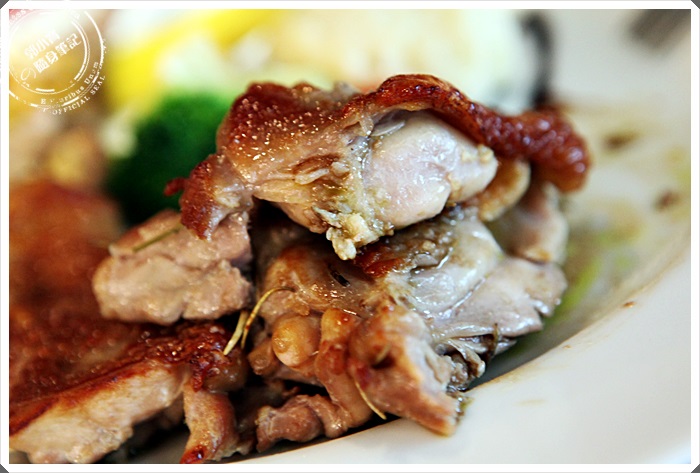 | 雞排烤得相當的不錯,外皮烤到微焦酥脆,肉汁也相當的多,切下一塊入口可以先咬到外皮"喀擦"一聲,雞肉相當的軟嫩,但是我個人一直不是很喜歡迷迭香,總覺得有點藥水的味道。 |