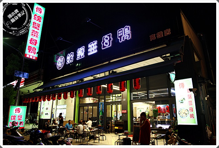 大昌路上的傳螃蟹薑母鴨並不難找,這條路上有很多消夜跟海產攤,再以前的鼎山夜市旁邊,綠底紅字的招牌相當的鮮豔好認,店面也算是很大間。 |