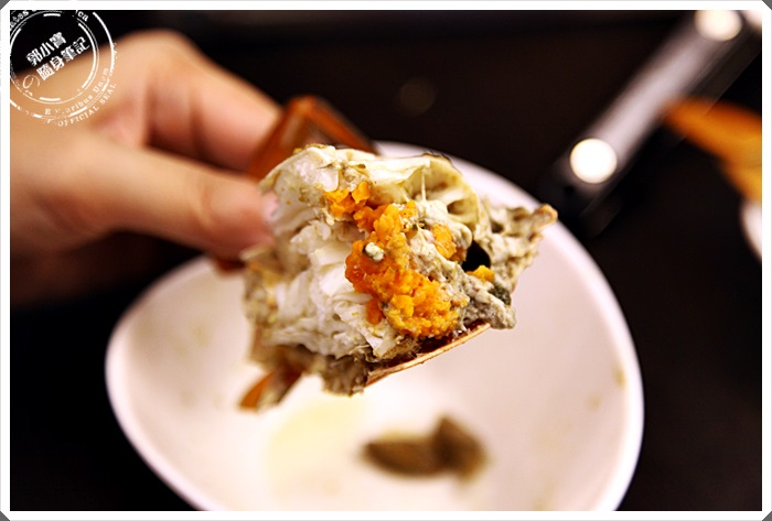 這時候就可以看到螃蟹裡面滿滿的蟹膏跟卵了。 |