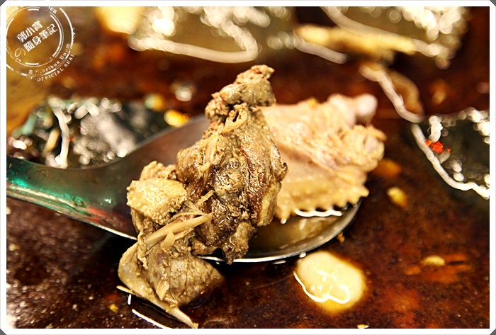 煮了大概20分鐘後,熟度的部分是店家會幫你看的唷,千萬別自己認為熟就夾起來吃了,店家會幫你時時走過來看一下熟度,這一點工作人員還滿熱心的,看到螃蟹都熟的時候,且薑母鴨鍋表面都起了細泡,工作人員第三度來幫我們檢驗熟度,看完後就跟我們說差不多熟了,要幫我們夾起來進去裡面剁小塊一點方便食用,趁這時候我就趕快嚐鮮喝了一口湯頭,畢竟就是為了這一口湯頭來了。