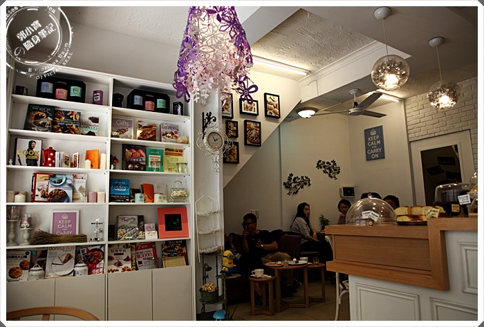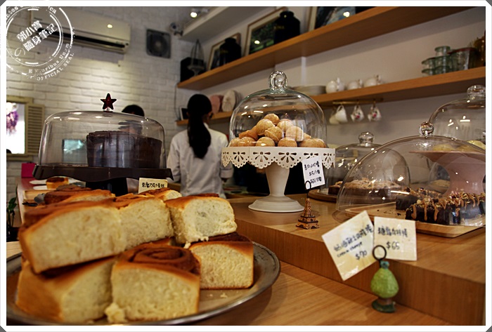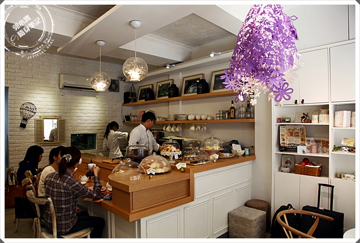 店內空間其實一點都不大,頂多坐了個10來個客人就幾乎爆滿了,所以很多人常常在外面排隊,不然就是都外帶居多,因為當天真的人潮非常的多,所以我也不好意思多拍室內環境,基本上算是滿有歐式小文青的感覺,Miss V Bakery最主要的還是以喜餅為主,