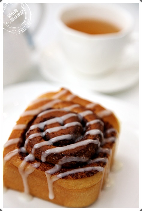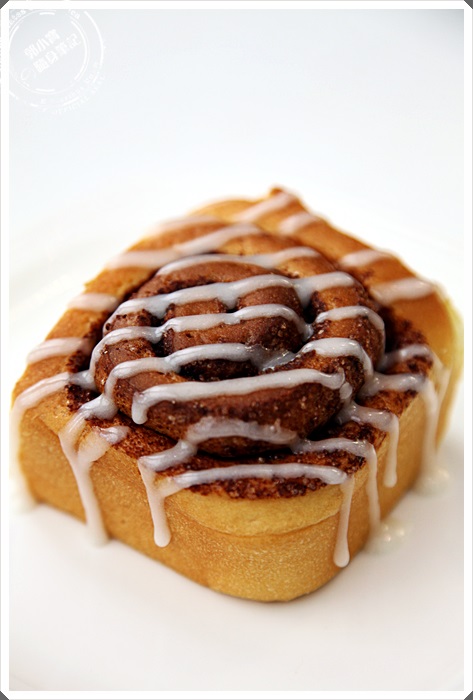 | Miss V Bakery的肉桂捲口味真的很多,這天我們點的就是原味肉桂捲淋上糖霜的口味,看起來似乎是平淡無奇,但是送到面前來的時候就會一股淡淡肉桂香氣飄了出來,輕輕的咬下一口會,那濃郁卻不刺舌的溫和肉桂香氣就擴散到整個嘴巴了,每一口都有肉桂的香氣,我個人是很不喜歡肉桂香氣的人都覺得他們家的肉桂捲讓我好喜歡,咀嚼中更發現了它們家的肉桂捲的口感比較紮實濕潤一點,上面淋的糖霜不會太過於甜膩,跟肉桂香氣搭再一起相當的搭口也很適合,會讓人忍不住的一口接著一口的嗑光它。 |