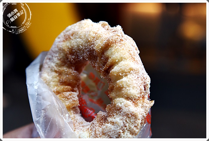 外型看起來就相當的可口了,看起來也跟一般的甜甜圈不太一樣,據說這脆皮甜甜圈一定要趁熱吃最好吃,所以我當下拍完就馬上吃了他!! |