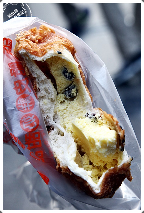 | 外表跟脆皮甜甜圈完全不一樣的葡萄奶酥口味,其實外皮跟麵包的方式都是一樣的,主要是理面加了葡萄乾跟奶酥。 |