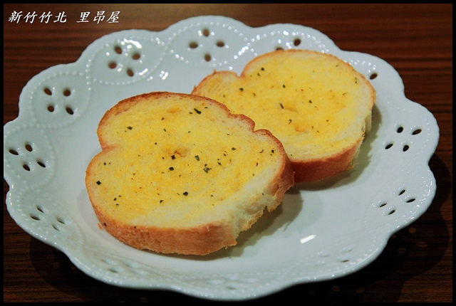 | 餐前麵包,餐前麵包其實就是大蒜麵包,一份餐點都會附上兩片,大蒜麵包吃起來鬆軟之中帶有麵包該有的嚼勁,而且不會太過生硬,加上香濃的蒜香味道更是十分吸引人,瞬間就將這兩片麵包給喀光了, |