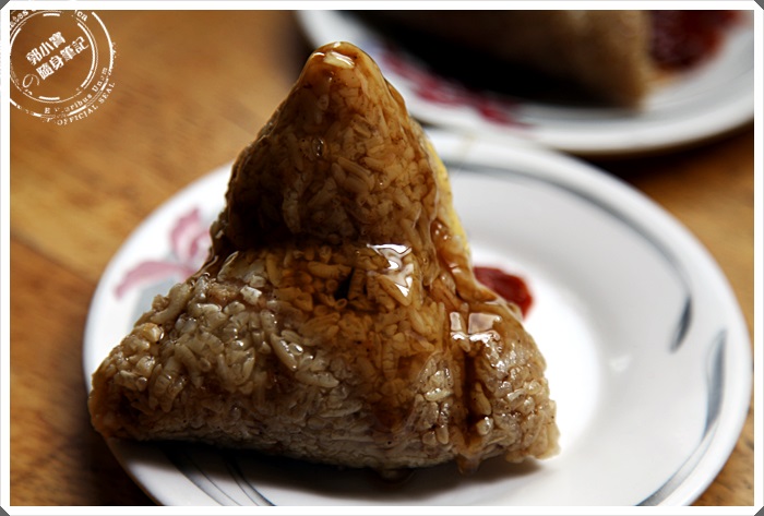 吃起來的糯米有黏性但是沒有一般南部粽那麼的黏,一口吃下炒料的醬油並不會死鹹,而且還有很漂亮的醬色。 |