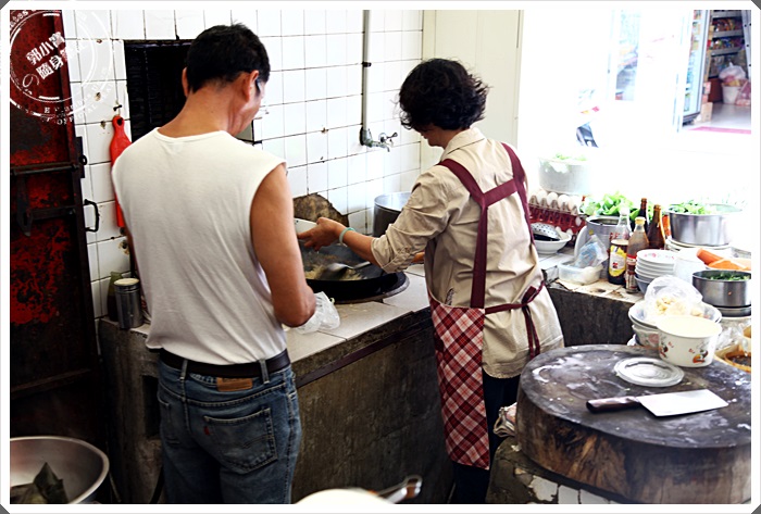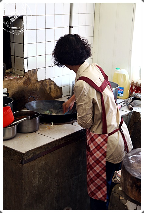 | 泉三肉粽大王的廚房相當的老舊,是使用大鍋子在炒菜的,我有仔細看了一下是使用瓦斯的明火,本來以為還是使用木材燃燒的老灶,大部分時間都是老闆娘一個人再烹煮,偶爾她老公?會一起來幫忙˙。 |
