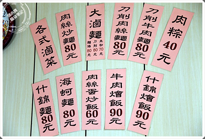 | 牆上貼著泉三肉粽大王的販售的品項,好險每一種都點上一份,不然可惜了這個緣份XD |