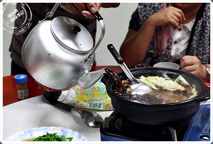| 等羊肉爐的湯滾了以後當然是先喝上一口湯頭,清雅羊肉爐的湯頭真的跟店名一樣,真的相當的清淡,只有些許淡淡的藥膳味也沒有肉味,喝習慣台灣本島的羊肉爐湯頭後再喝清雅的湯頭真的有些不習慣,所以湯頭我們就還點了其他的火鍋料跟高麗菜,想說再熬煮一會看看會不會比較鮮甜,最後還是一樣相當的淡。 |