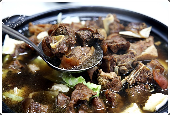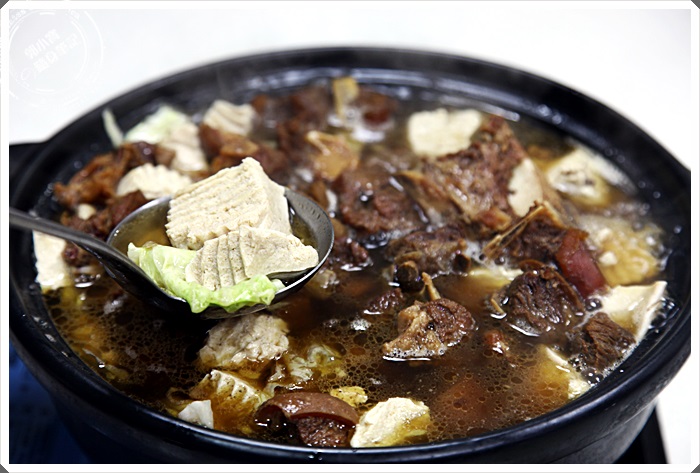 | 看看這一大鍋的羊肉爐,上面不只有帶皮的羊肉以外,還有豆腐跟火鍋餡料,超划算的一大鍋,難怪可以讓當地人那麼的喜愛,肉都多到滿出來了。 |