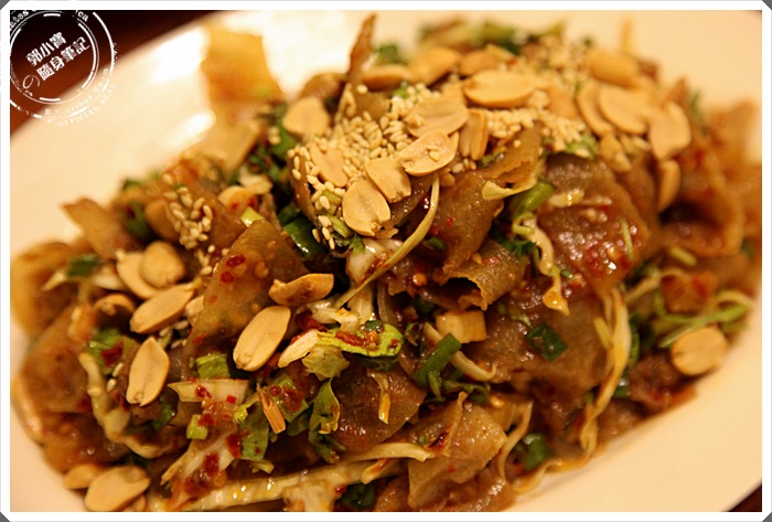 這一道豬皮調味的我相當的喜歡,灑滿了芝麻跟花生還是辣醬汁,吃起來就相當的清爽,充滿了芝麻跟花生的香氣,豬皮相當的有咬勁。 |