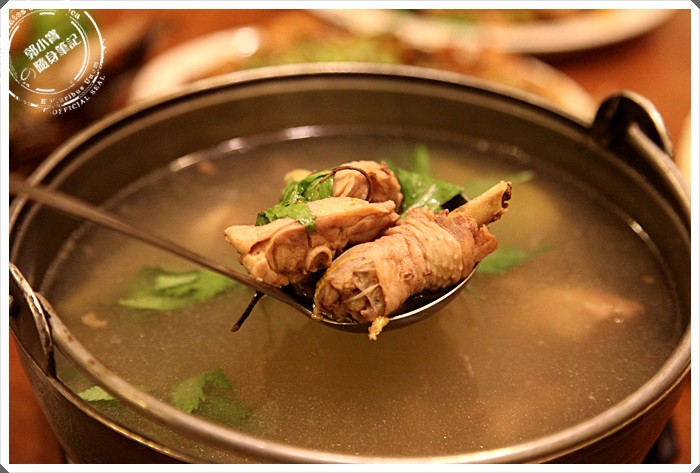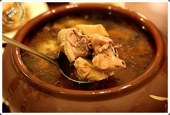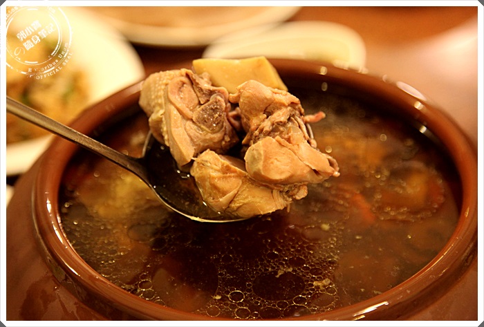 這一道屬於雲南名菜,最重要的是土陶氣鍋,沒有這一個雲南過來的土陶氣鍋就不是雲南氣鍋雞了,加上這一鍋基本上要熬煮好幾個小時以外,而且也不能加湯,主要是靠蒸氣透過中間的圓管冷卻變成水滴滴入,費時費工的一鍋湯,想喝的朋友記得一定要事先預約。