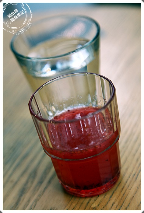 因為朋友點了佐曼咖啡館主推的早午餐之旅系列,這系列都是走套餐類的選擇,餐前都會附上一杯新鮮的果汁,果汁的內容每天都不同,主要還是以店家提供的為主。