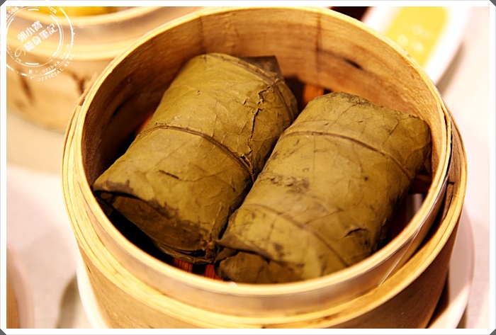 | 打開荷葉後一整個荷葉香氣就飄散過來了,但是米飯看起來稍微白了一點,似乎沒有入太多的醬色,但是這香味確實是我吃過那麼多港點中荷葉香氣最重的一家。 |