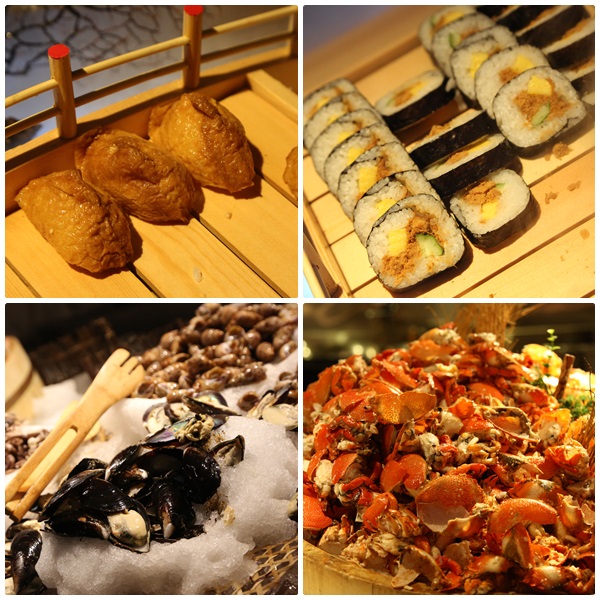 | 我想自助餐廳重點的日本料理區也是大家爭先恐後的一個地區,幾乎自助餐廳絕對不會脫離海鮮生魚片等高價食材,豆皮壽司相當的美味,看熱門的程度就知道了,這邊也有現做的手捲,但是因為要保留戰力到其他區域,所以就沒有特別拍手捲了,除了壽司類的部分,當然其他海鮮貝類也不能少。 |