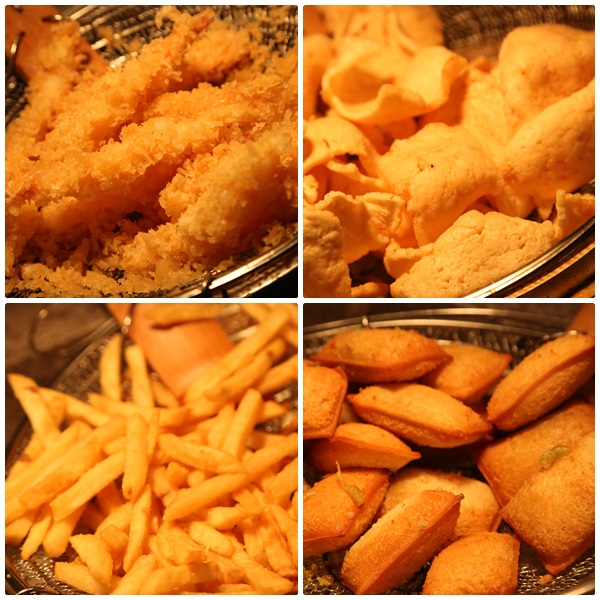 | 這一區幾乎都是日式的炸物,當然最熱門的就是炸蝦了,可以親眼看到師傅一條條完整的蝦子裹粉下去詐,熱呼呼上鍋馬上就被搶光了,除了炸蝦以外還有很多相當熱門的炸物。 |