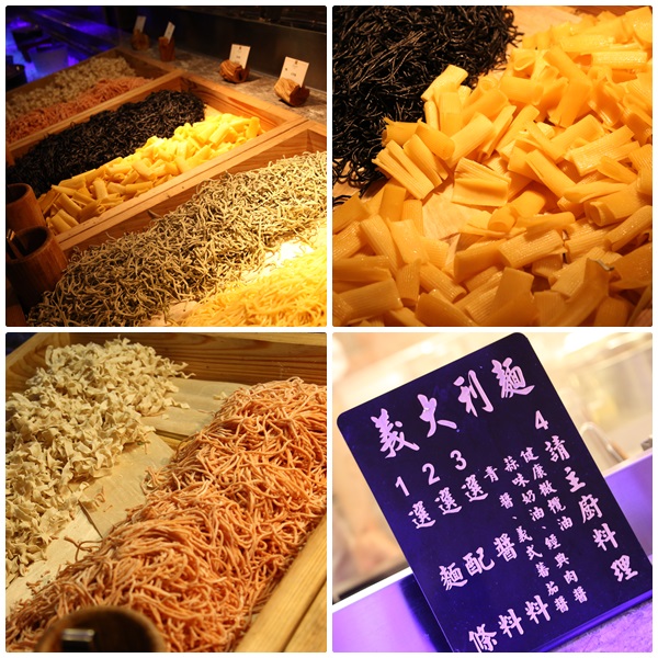 | 義大利麵的麵碼就相當的多種了,而且還是各種顏色通通都有,除了麵碼可以自己選擇以外,還有四種口味可以選擇,把妳要的麵碼選好後交給廚師,他就會幫你現煮義大利麵了。 |
