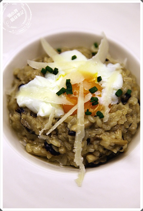 8%的燉飯也是屬於米飯較生硬的那種,牛肝菌的味道頗濃厚,將蛋黃劃開讓蛋黃液與燉飯混和,吃起來又是不一樣的風味。 |