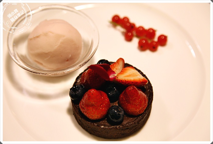 巧克力甘那許莓果塔佐白玫瑰冰淇淋