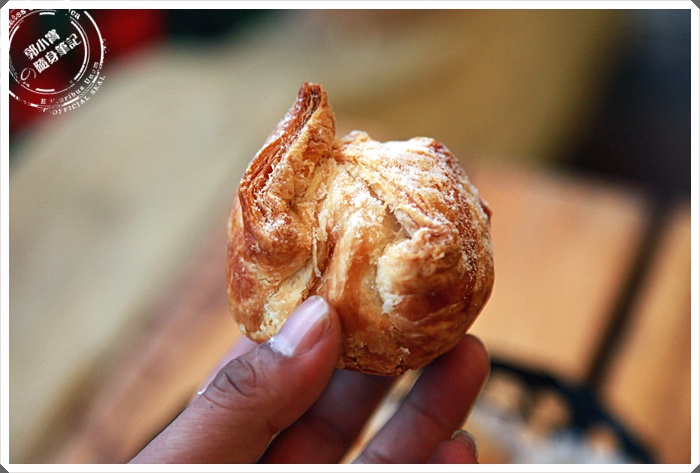 | 外層酥皮的表現相當的搶眼,拿在手上真的就可以感覺到一不小心太用力就會捏碎她了,一口咬下那一層層的酥皮就這樣化在嘴裡,咀嚼中可以明顯的嚐到麵甜香氣,當中還有淡淡的奶油香氣,這一款真的厲害! |