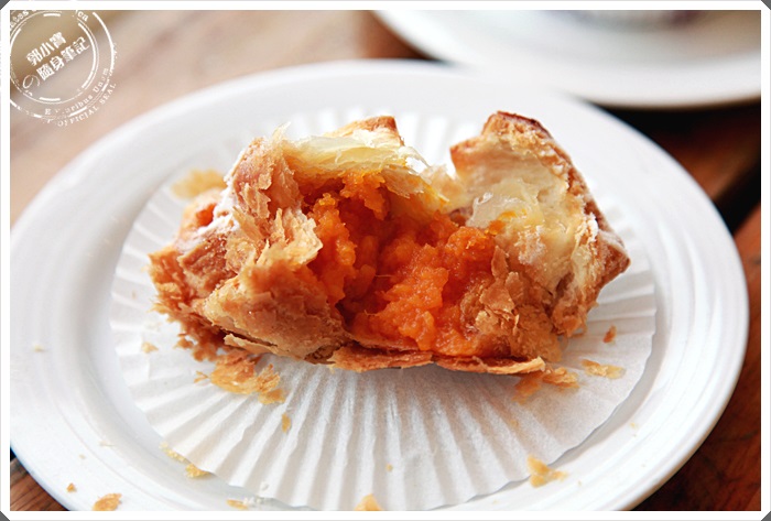 內餡是66號紅心番薯熬成的內餡,一口連酥皮一起咬下的話,相當有層次感的地瓜千層酥,紅心地瓜餡的香甜不膩與綿密口感令人無法停下來,現在真的還會回想那千層酥酥的口感跟地瓜香味。
