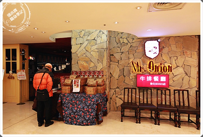 | 起源於天母的Mr.Onion牛排這兩天相當的受歡迎,本以為天母出身的餐廳價位會相當的高,但是這一次吃下來卻意外發現CP值意外的高,整體價位相當的平價,這次我們來到的分店是位於東區敦化SOGO的地下一樓,假日用餐時間幾乎是一位難求,地下一樓一下樓梯就可以看到Mr.Onion的招牌相當顯眼佇立眼前。 |