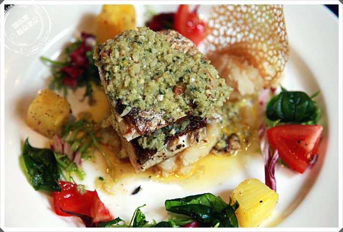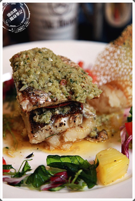 | 給了厚厚的兩大塊海鱸魚,再切魚排的時候都不會散開,有些排餐店的魚排一切幾乎整個肉就散掉了,但是Mr.Onion的魚排相當的新鮮,不用過多的調味,沾著香蒜與紮實的魚肉一起入口就相當的美味。 |