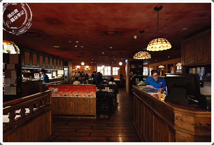 | 店內的裝潢相當的美式,運用大量的木頭櫃頭及隔間看起來更有氣氛,Mr.Onion確實也是比較偏美式風格,但是比起星期五餐廳卻是划算許多,牆壁粉刷感覺有點仿舊,搭配吊燈也有點墨西哥的風格,當天我們約11點,所以客人看起來還好,等我們都入座後瞬間12點左右就一位難求了@@ |
