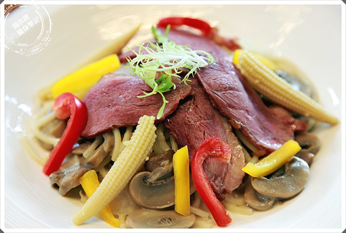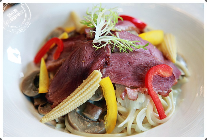 | 煙燻鴨胸的肉片給的相當的豪氣,鴨胸入口有著淡淡的煙燻味不會搶到鴨胸的嫩度與香度,搭配白醬義大利麵吃的感覺頗為奇異,兩種味道的衝突味蕾頗大但是卻又很搭,搭配著野菇食用又是完全不一樣的層次,喜歡多變口味的朋友可以選擇這一道。 |
