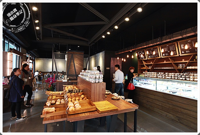 店內的裝潢風格頗有後現代建築的感覺,盡量保留了水泥建築的原味,再以大量木頭及暖色系的燈光帶出鄉村風的感覺,店裡面販售的其實麵包並不是最主要的商品,但是當天我們呆到晚上7點多的時候麵包就是掃光了,我們當然也順手買了一些,仔細挑了一歇後才發現PAN JT潘瑞宗手感的店歐式麵包的價格也很貼心,幾乎一個大歐式麵包只需要100大洋不到,跟外面的行情比起來動輒2。3百大洋的歐式麵包比起來真的划算許多,簡直是台式麵包的價格了。