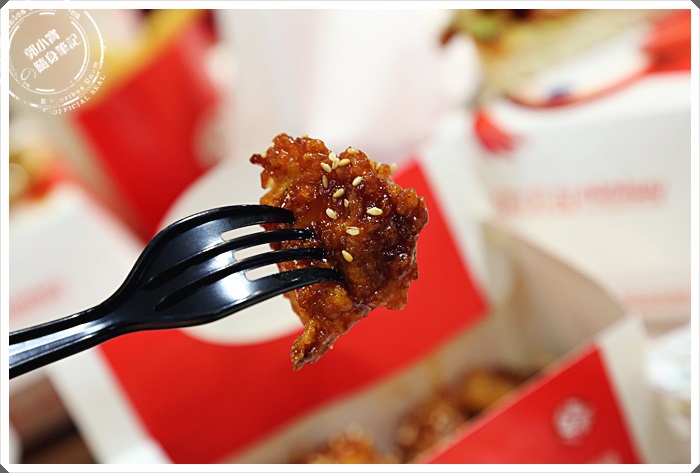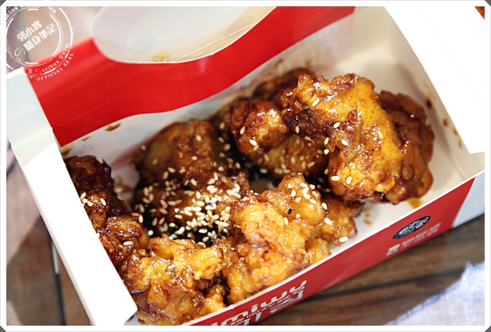 光是一打開一看就彷彿回到了韓國的TWOTWO FRIED CHICKEN一般,只是一個薄粉一個厚粉,但是鮮豔濃稠醬汁的感覺與香氣真的是太相似了,尤其那白芝麻畫龍點睛的效果真的是堪稱一絕,但是因為米米屋的雞肉塊皮下油脂相當的豐富,所以醬汁沒有特別濃稠以免過於膩口,吃起來醬汁感特別的重,酸酸甜甜帶點微辣入口真的會讓人一口接著一口,在配上一杯可樂或是有氣泡的飲料,真的超過癮的!! |