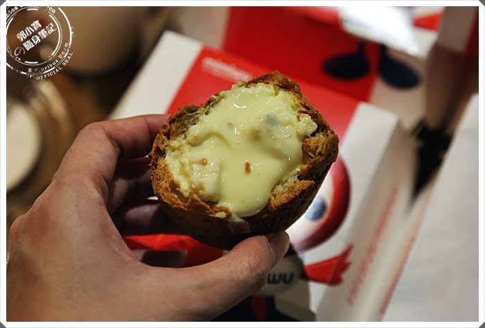 | 超令人難忘的爆漿泡芙,外皮是比較酥脆的麵皮,裡面的內餡一口咬下真的爆口濃郁十足,一吃就停不下來。 |