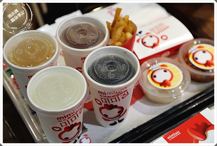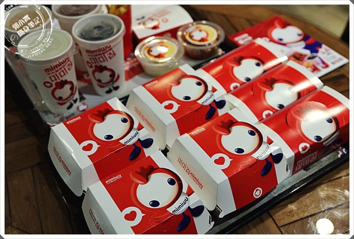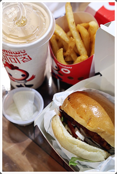 | 排了20分鐘的隊伍後才終於輪到我們,仔細看了一下招牌其實米米屋賣的品項根本就是速食店的規模了阿,哪是韓式炸雞店而已,根本就是韓國的麥當勞了,從漢堡到點心、炸雞、飲料通通都有,就姑且把她當作韓國來的速食店吧,後來上網一看才知道原來米米屋是道地的台灣品牌,主要都是遠赴韓國去試了許多的口味,學了許多韓國道地的醬料回來,就在南紡夢時代開了第一家韓國型態的速食店。 |