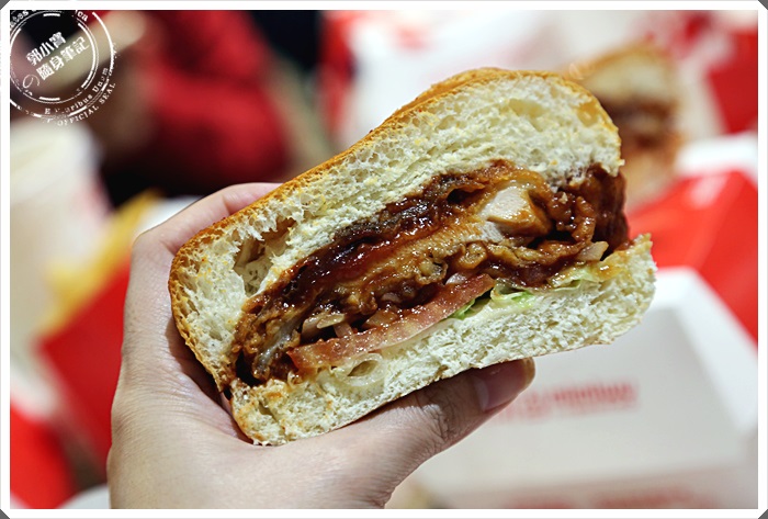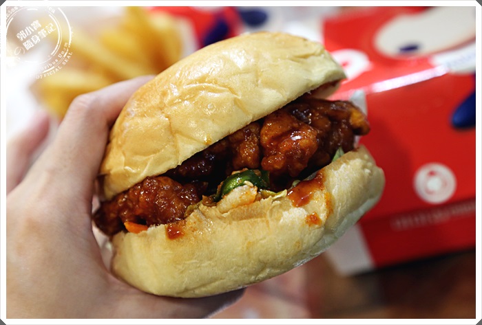 一整隻去骨炸雞腿果粉下去炸完後再淋上醬汁夾在雙層麵包裡,漢堡麵包屬於比較台式的軟式麵包,也因為這樣可以吸附大量的酸甜醬汁,一口咬下確實相當的過癮,可以撕咬到完整的雞肉快感!! |