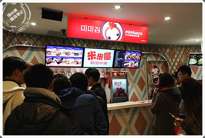 | 逛了一圈後發現最讓我們有興趣的就是這一家米米屋韓式炸雞了,這兩年因為韓劇的關係加上來自星星的你,韓式炸雞幾乎在台灣大街小巷夜市商圈通通都有,但是好吃的能吃的微乎其微,所以在南紡夢時代五樓看到有人賣韓式炸雞還是忍不住多看幾眼,看到排隊人潮相當的多,但是對這品牌老實說我真的相當的陌生,還是猶豫了一陣子,後來看跳號真的跳的飛快,才乖乖的趕快去排隊。 |