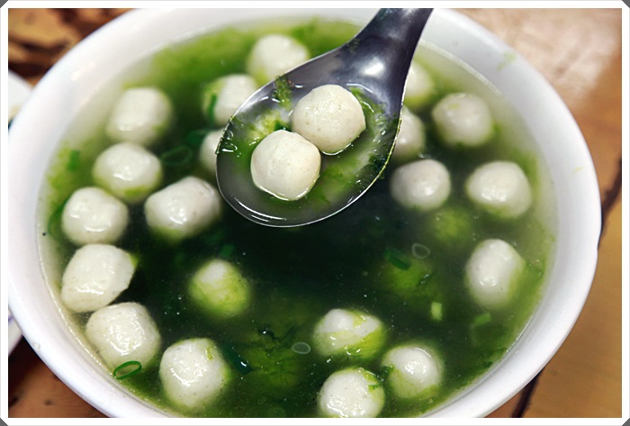 相當鮮美的海菜魚丸湯,我幾乎一個人就喝了3。4碗了,魚丸的口感超好的,輕輕一咬魚丸隨著上下牙齒凹陷彈出,咀嚼中彷彿聽到他的彈性斷裂聲音,真的超美味的,如果她不是尚青的魚丸的話,那他肯定加了超多的硼砂XD