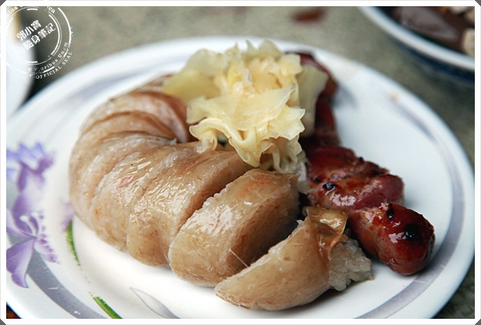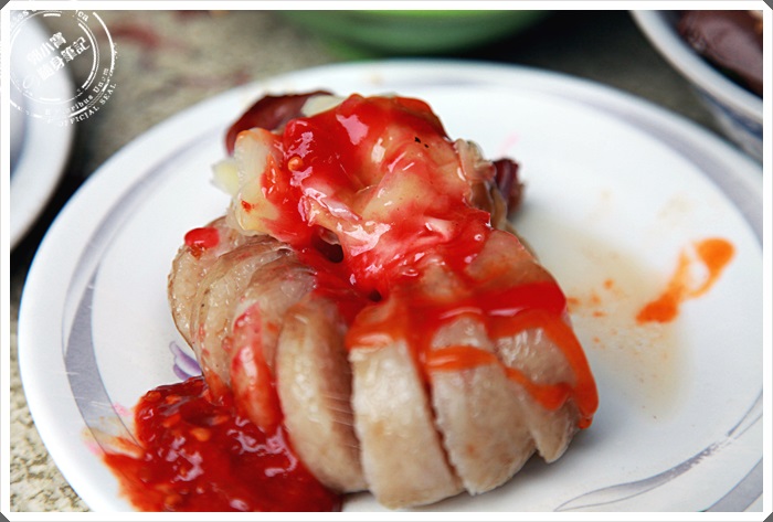 | 這邊很多人推薦的大腸根香腸並不是每份都是固定價錢,因為是手工灌製大腸,所以大腸的尺寸都相差滿多的,價錢也都不一樣,可以跟年輕老闆直接討論大概要多少的分量,我當天點的就是一份大約55元左右。 |