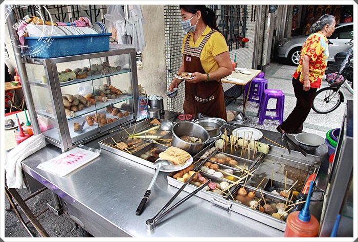 | 這一家黑輪攤最特別的就早上9點半就開始準備營業了,算是相當少見的黑輪攤,黑輪攤在我的印象中幾乎都是下午才出來,但是其實這邊也很多在地人把他當成早午餐在享用,大中午頂著大太陽一樣可以看到很多人潮在這邊吃午餐XD |