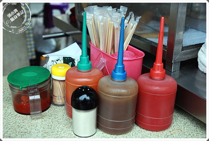 | 桌上的調味料也相當的多,記得小時候吃黑輪攤就是要這樣有很多的調味料,我最推薦的就是最右邊的那罐紅色番茄醬,真的是酸甜古早滋味,現在幾乎都沒有辦法可以吃到這樣沙沙口感的番茄醬,而且那個味道真的咬一口就知道是古早味!! |