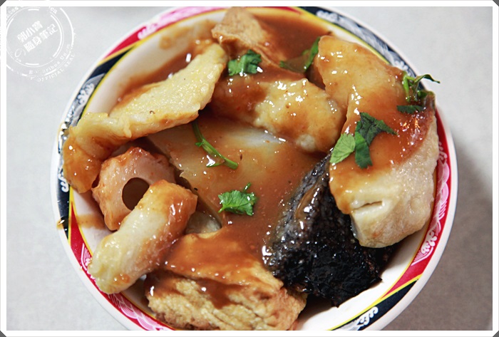 滿滿的一碗甜不辣送上來的時候,我本來還以為是送到大碗的,問了一下後老闆才說這就是小碗的份量阿,仔細的翻了一下後裡面有竹輪、甜不辣、豬血糕、菜頭、黑輪、炸豆腐等相當的豐富,這樣我以後幹嘛去便利商店買關東煮啊!!!!