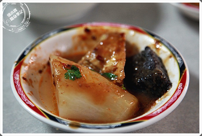 米糕上的滷味滷得頗為入味,也有一點像是阿婆鐵蛋的感覺了,應該是滷了很久,米糕吃起來不太黏牙,我喜歡它們家的甜辣醬,很有小時後的甜辣醬風味。