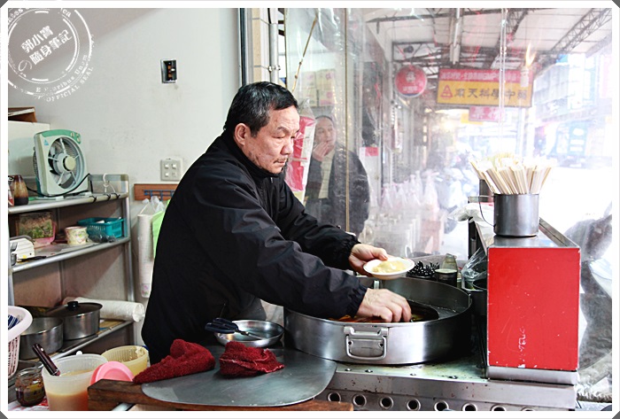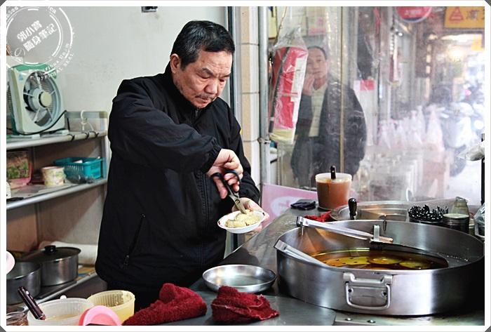 老闆手腳俐落的幫我剪開肉圓,吃了一整頓下來發現很多老人家都來這邊吃肉圓,不同於一般的熱門肉圓店,這邊幾乎都是老客人,而且年紀都頗大了,問了一下老闆才知道以前在大同水上樂園的時候他的知名度還頗高的,後來搬了幾次後只剩下老客人才知道他,自己年紀大了其實也是當成興趣在服務老客人。