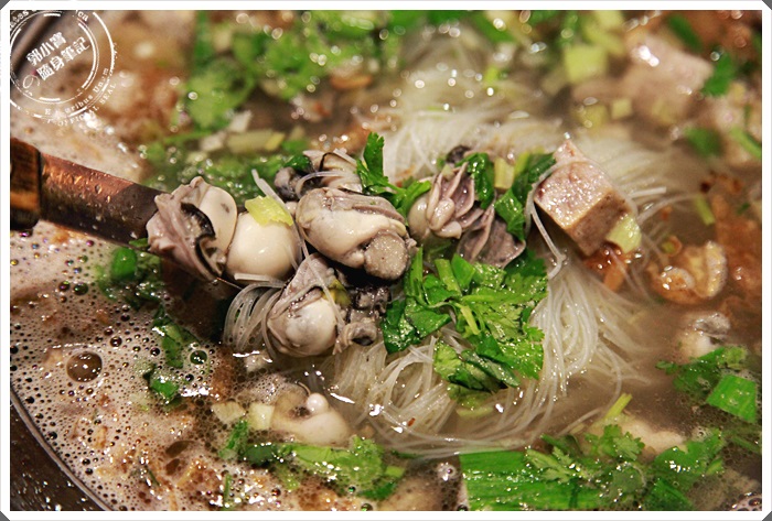 | 鳥哥強力推薦的蚵仔麵線,滿滿的一大鍋湯頭頗有古早味的迷人香氣,裡面的蚵仔跟豆腐量較為普通,重點是湯頭喝完可以免費續加,但是一鍋單價350個人覺得還可以接受。 |